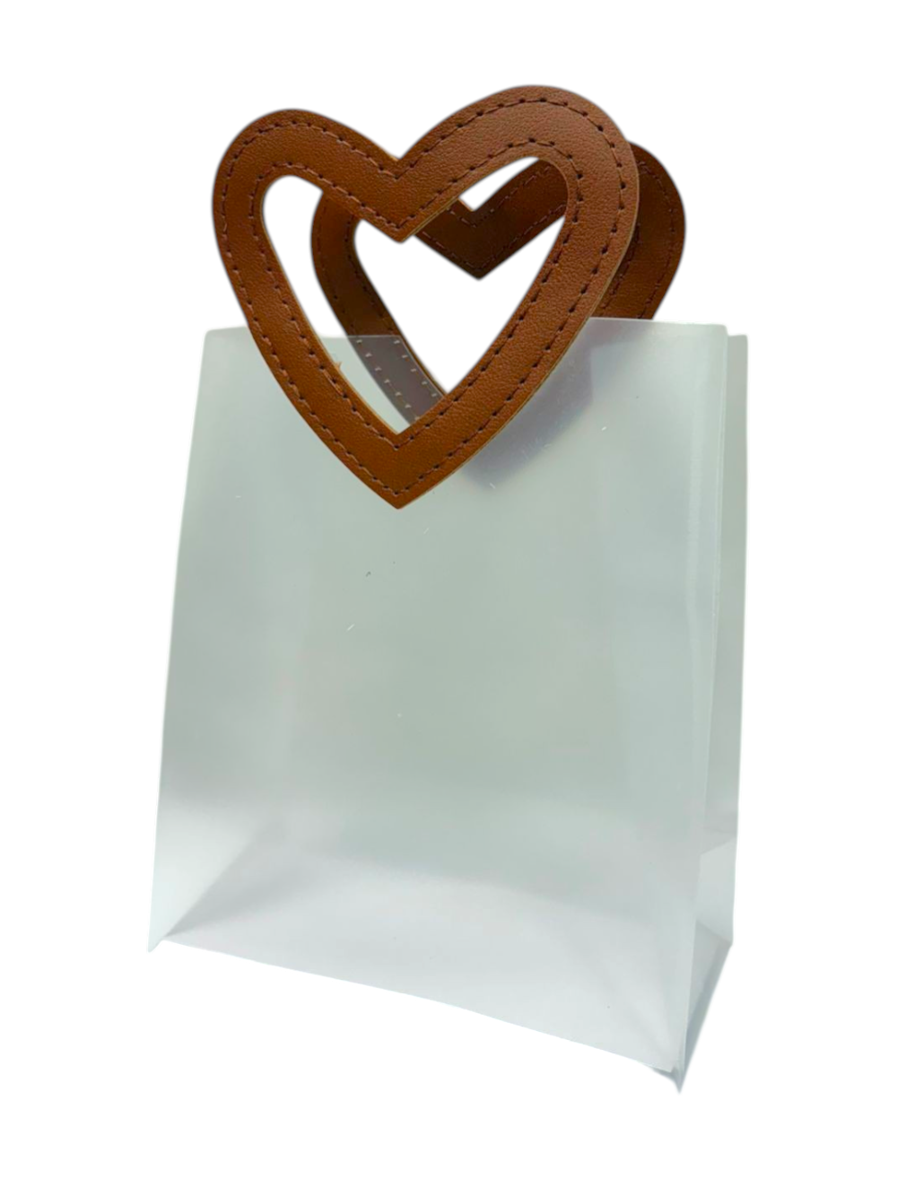 BOLSA ACETATO MANIJA CORAZON PEQ X1UND CAFE